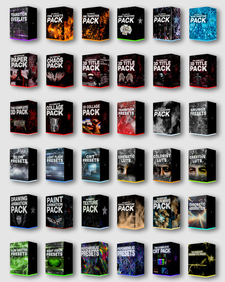 ✅The Complete Editor's Bundle Contains Everything You Need: The Best All-In-One Effect Plug-In, High Quality LUTS, Presets, Overlays, Transitions, Mixed Media Assets and Animations, 3D Assets, 3D Title Animations/Assets, Presets, Shockwave Assets, 2D and 3D Collages, Realistic Element Assets, Sound Effects, Textures, and Much More!